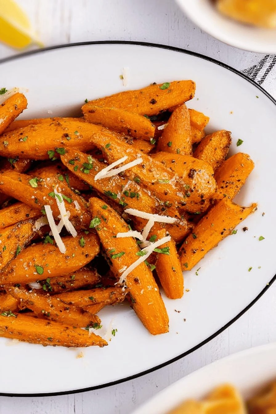 When the first batch comes out, top with parmesan and parsley while they’re still warm. Then repeat the whole thing with the remaining carrots.