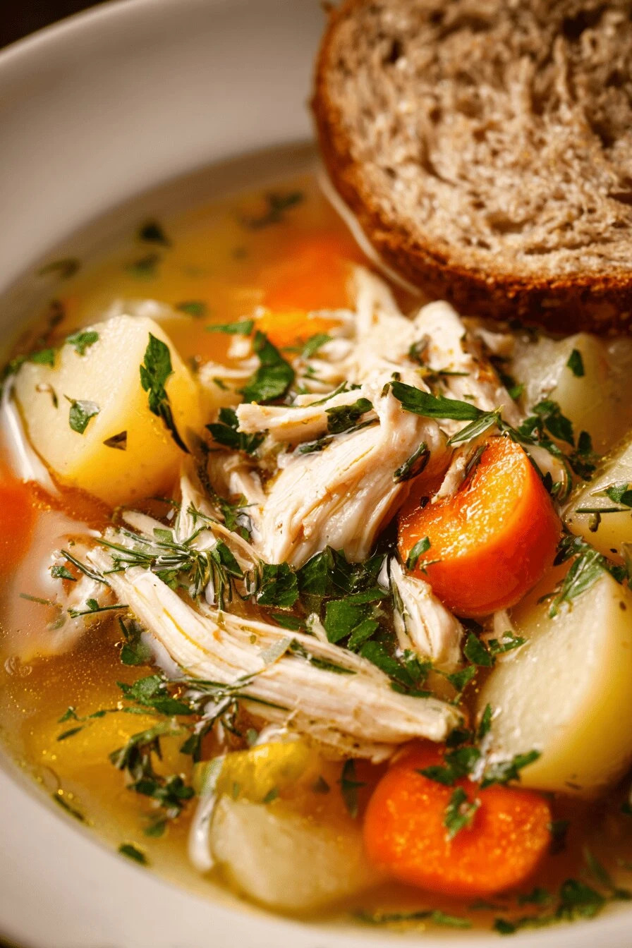 Forty-five minutes start to finish. Most of that is just sitting there watching it bubble. Actually tastes like fall without trying. Parsnip and tarragon do the heavy lifting. One pot. Chicken cooks in the broth instead of somewhere else. No extra pans. Cold the next day, maybe better. Broth soaks deeper into the meat overnight. Bread optional but you’ll want it. That’s the whole thing—dipping.