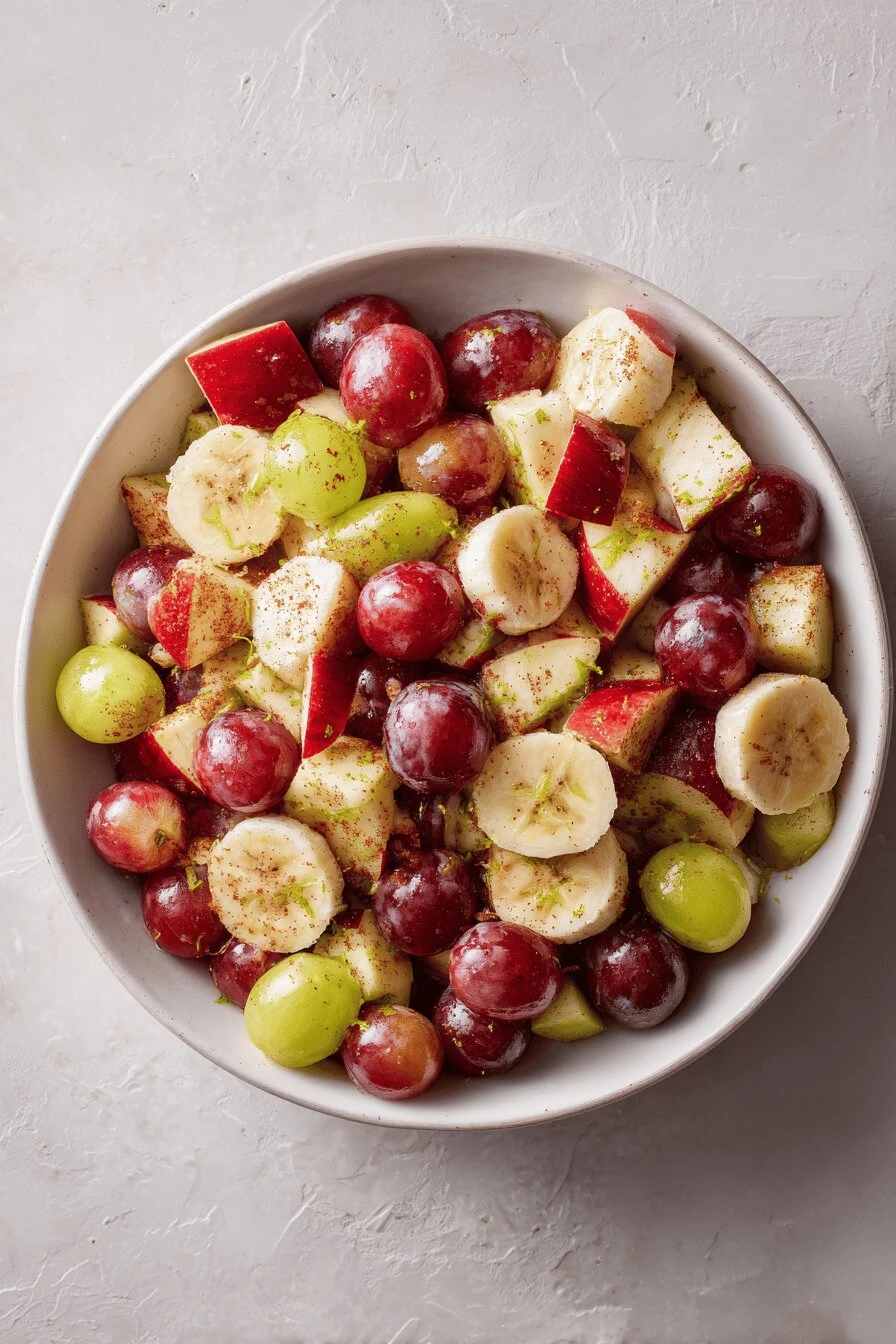 Substitutions work. Pears instead of apples bring something floral and soft. Fig halves instead of grapes add depth. Skip honey and use agave if you’re vegan. Swap lime for orange if you want something more mellow. It all works. The structure is solid.