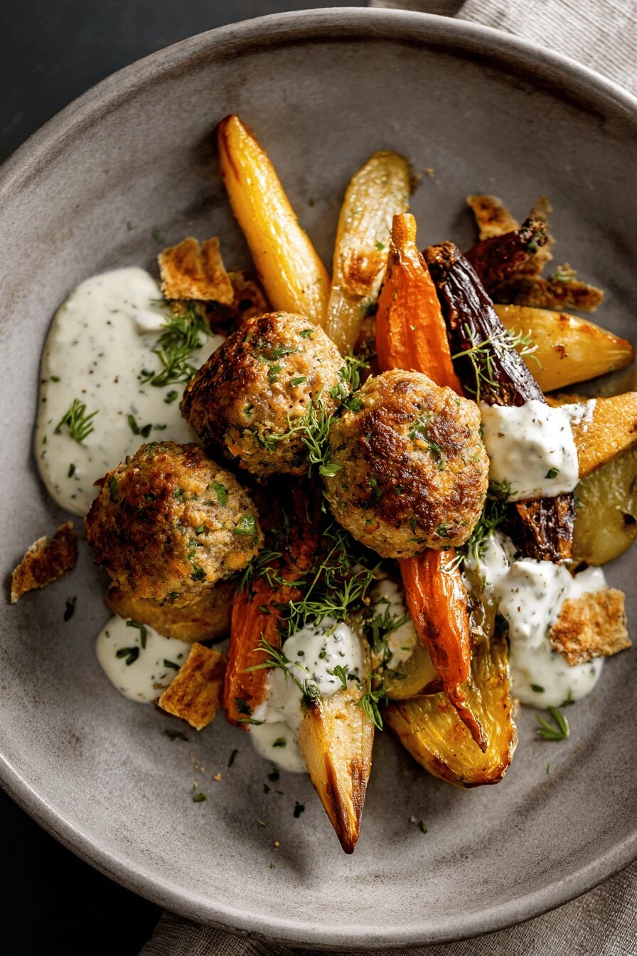 Pork Meatballs in Oven with Root Vegetables