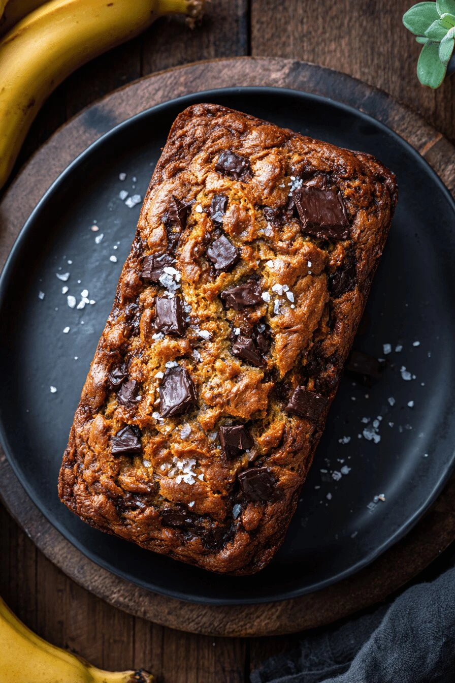 Unbleached all-purpose flour. Not bread flour. The protein ratio matters for texture here. Baking powder and baking soda. Both. The combo gets you lift without that soapy baking soda taste. Softened butter and maple syrup. Not honey. Maple has a different viscosity—changes how the batter comes together. Swap it out and the moisture balance shifts. Two large eggs. Room temperature works better but cold is fine too. Four ripe bananas. Like, actually ripe. Brown spots. The darker they are, the sweeter and more banana-forward it tastes. Use green ones and you’re basically just making bread with banana flavor as a rumor. Plain Greek yogurt. The full-fat kind. Low-fat tastes thin. Brown sugar—packed. That means press it down in the measuring cup. Loose brown sugar throws off the ratios. Dark chocolate bits. Not chips. Bigger, chunkier, holds its shape better. About a cup and a quarter. Flaky sea salt. A pinch on top. Sounds weird. Not weird.