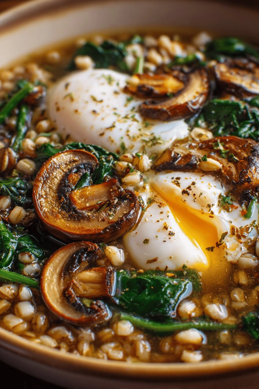 Barley Mushroom Soup with Poached Eggs