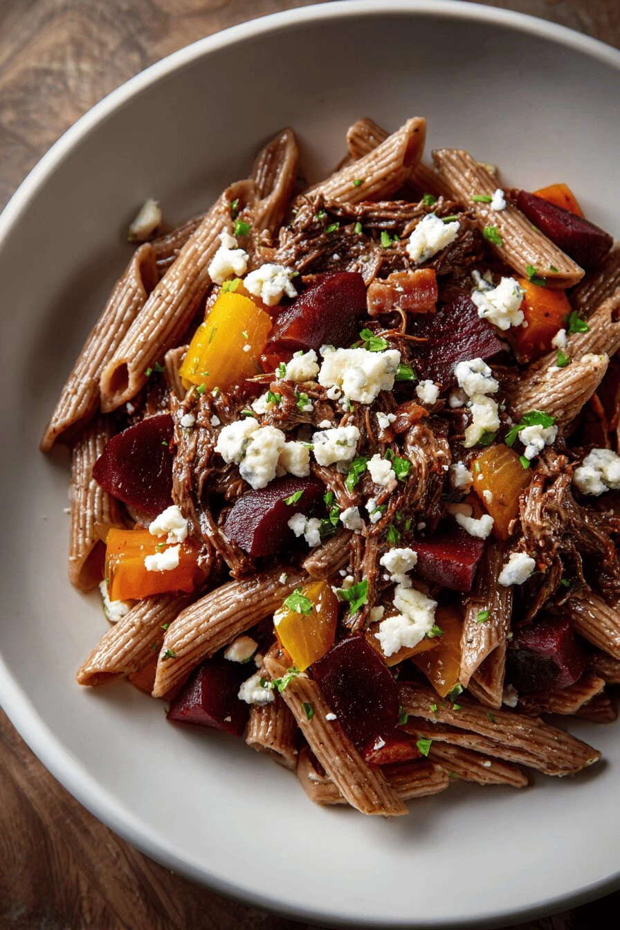 Beef Pasta with Beets and Gorgonzola