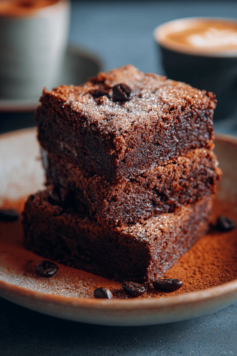 Cool completely in the pan on a rack. Hot brownies fall apart. Completely cool. Use that parchment sling to lift the whole thing out, then cut once everything’s settled and cold. Clean edges. Dust with cinnamon sugar right before you eat them. That warm spicy shimmer on top makes them feel fancier than they are.