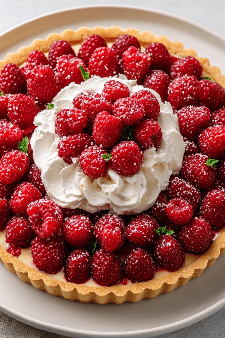 - 13 Pipe or dollop whipped cream into center of tart just before serving. Garnish with few fresh raspberries or thin lemon zest strips for brightness.