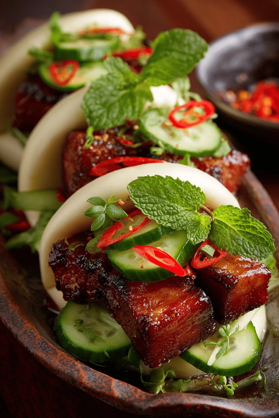 Can I make the pork belly steam bun filling ahead of time? Yes. The whole braised pork part goes together two, three days before. Slice it, sauce it, keep it cold. Warm it gently when you’re ready to assemble. Just don’t let it dry out — add a splash of that cooking liquid back in if it looks tight.