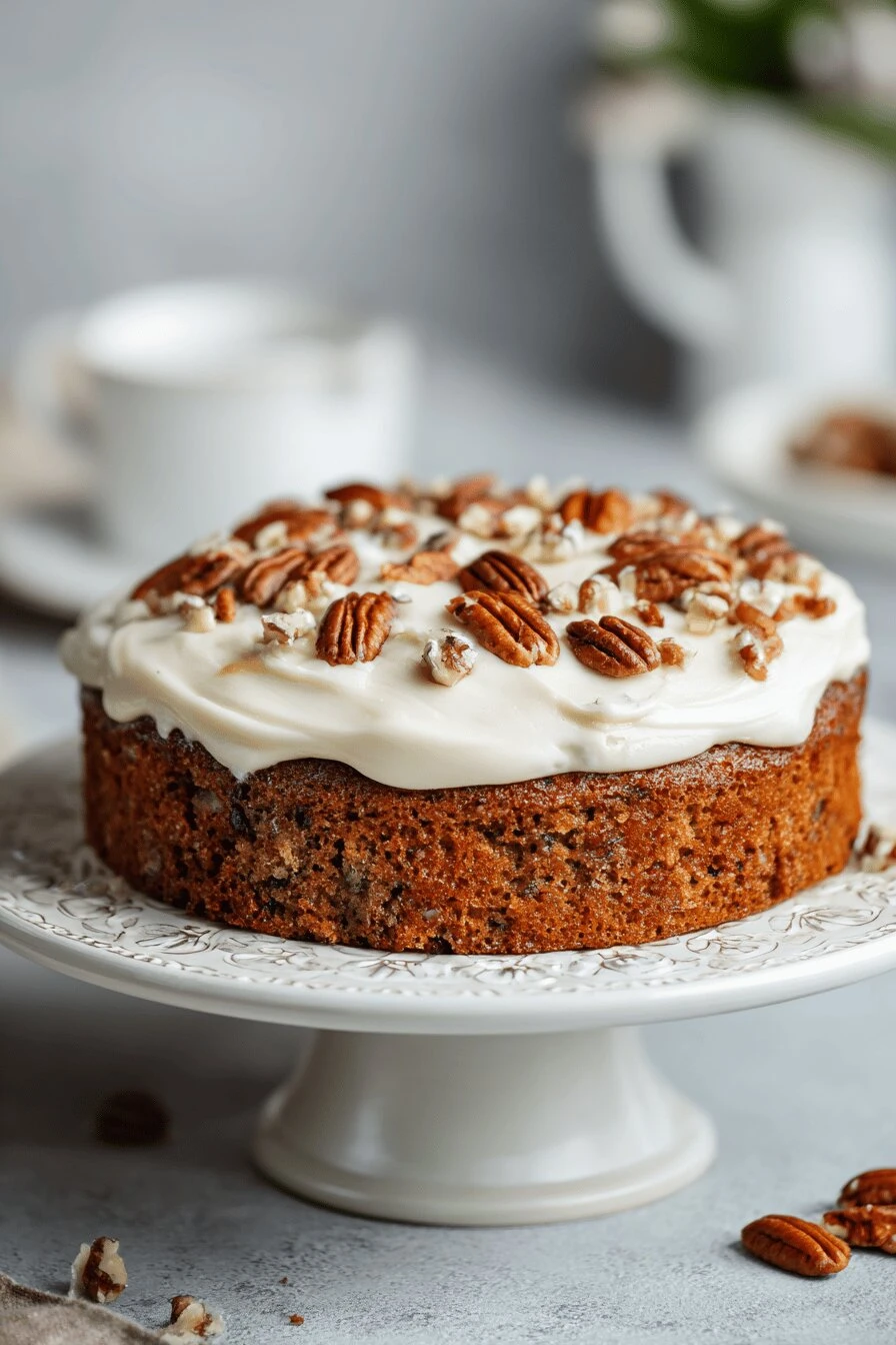 Is there anything I can swap for pecans? Walnuts. Toasted almonds. Hazelnuts. They taste different but they work. The cake is good without nuts too if someone’s allergic. Just skip them and it’s fine.