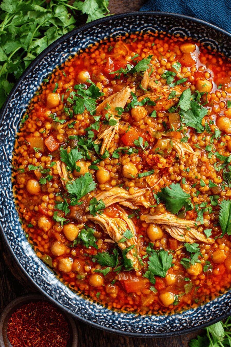 Bulgur Chicken Soup with Spiced Tomato Broth