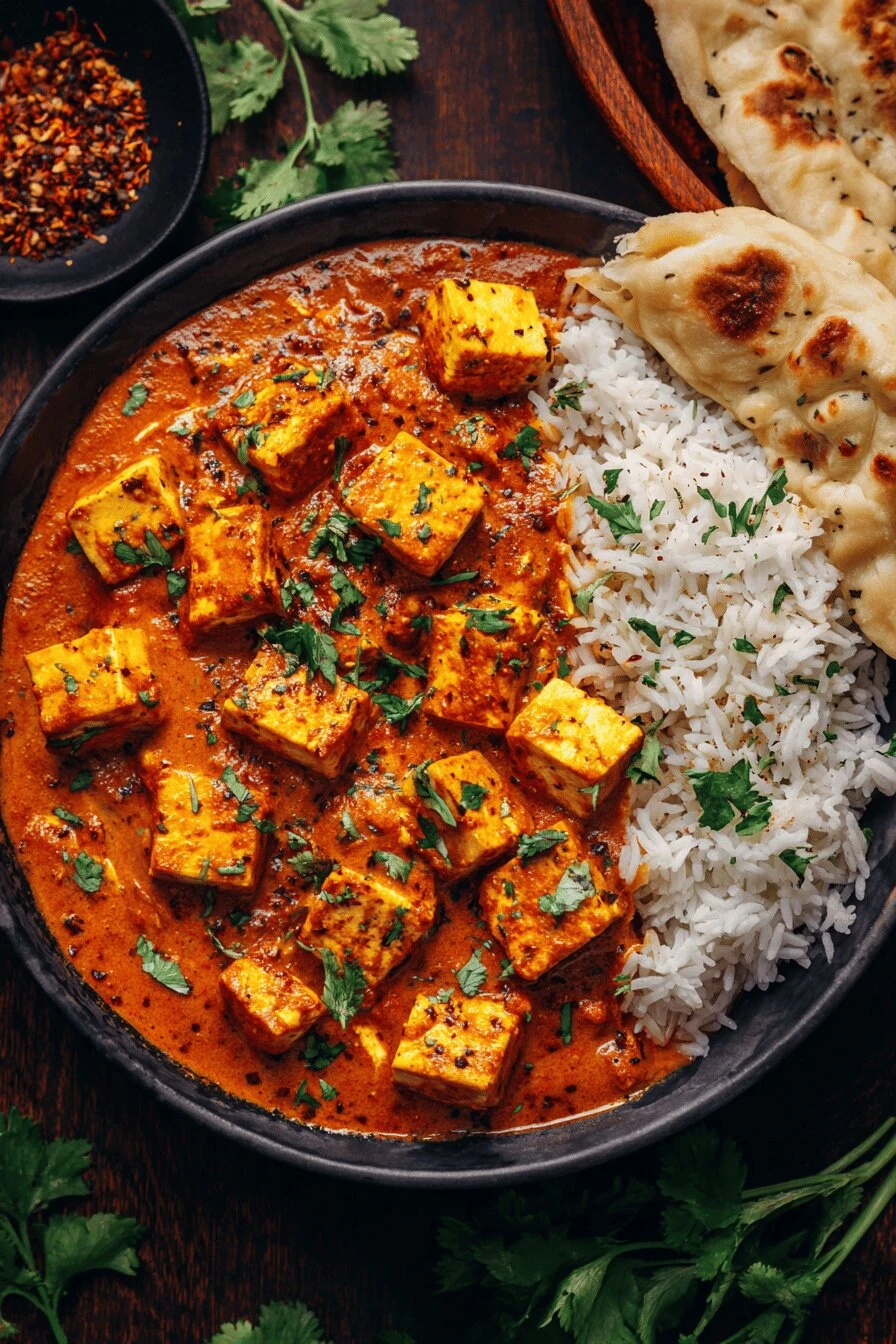 - 9 Notes: Used mace for subtler spice, nutmeg can overpower. Cream can be swapped for coconut milk or cashew cream — coconut adds sweetness, use less chili if so. Tofu boiling followed by crisping is a trick learned after mushy disappointments. Sauce texture: not baby food, but no chunky tomato bits either — mash till almost smooth. Watch butter carefully; burnt butter kills sauce sweetness. Fresh coriander for brightness, dried just disappoints.