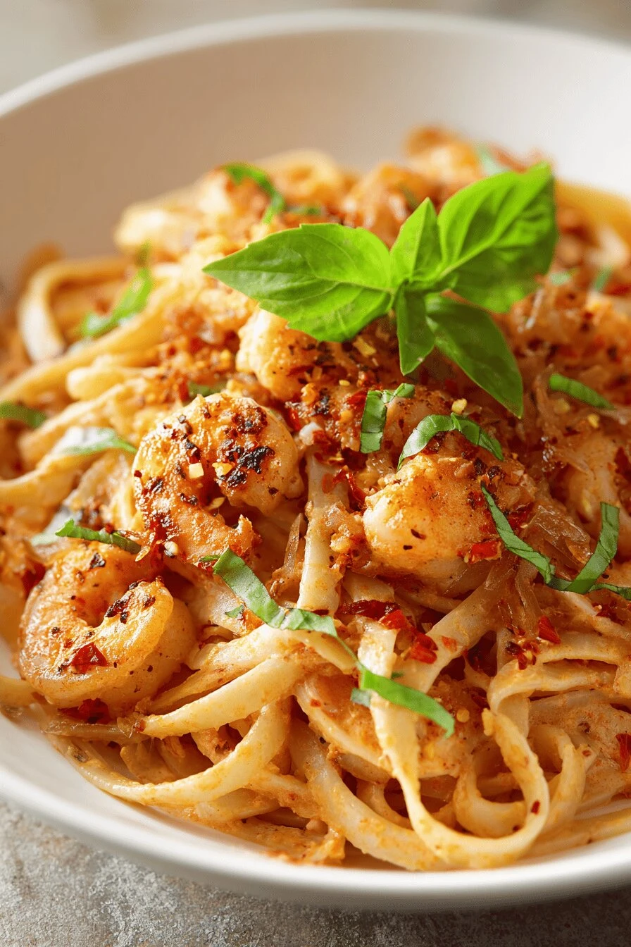 Thirty minutes total. Seriously. Prep is twelve, cook is eighteen, and most of that’s waiting for water to boil and pasta to finish. One skillet for the whole sauce. Shrimps cook, come out, sauce builds in the same pan using all that seafood flavor stuck to the bottom. Spicy but not aggressive—the cream and mascarpone soften the heat while the chili flakes still have a say. Works for people who like actual flavor in their pasta, not just butter and salt. Tastes like restaurant food. Cajun shrimp recipes with pasta usually feel like they’re trying too hard. This one doesn’t. Easily customizable without changing anything. Add sausage if you want. Skip the basil. Swap linguine for fettuccine. Doesn’t matter—the base is solid either way.