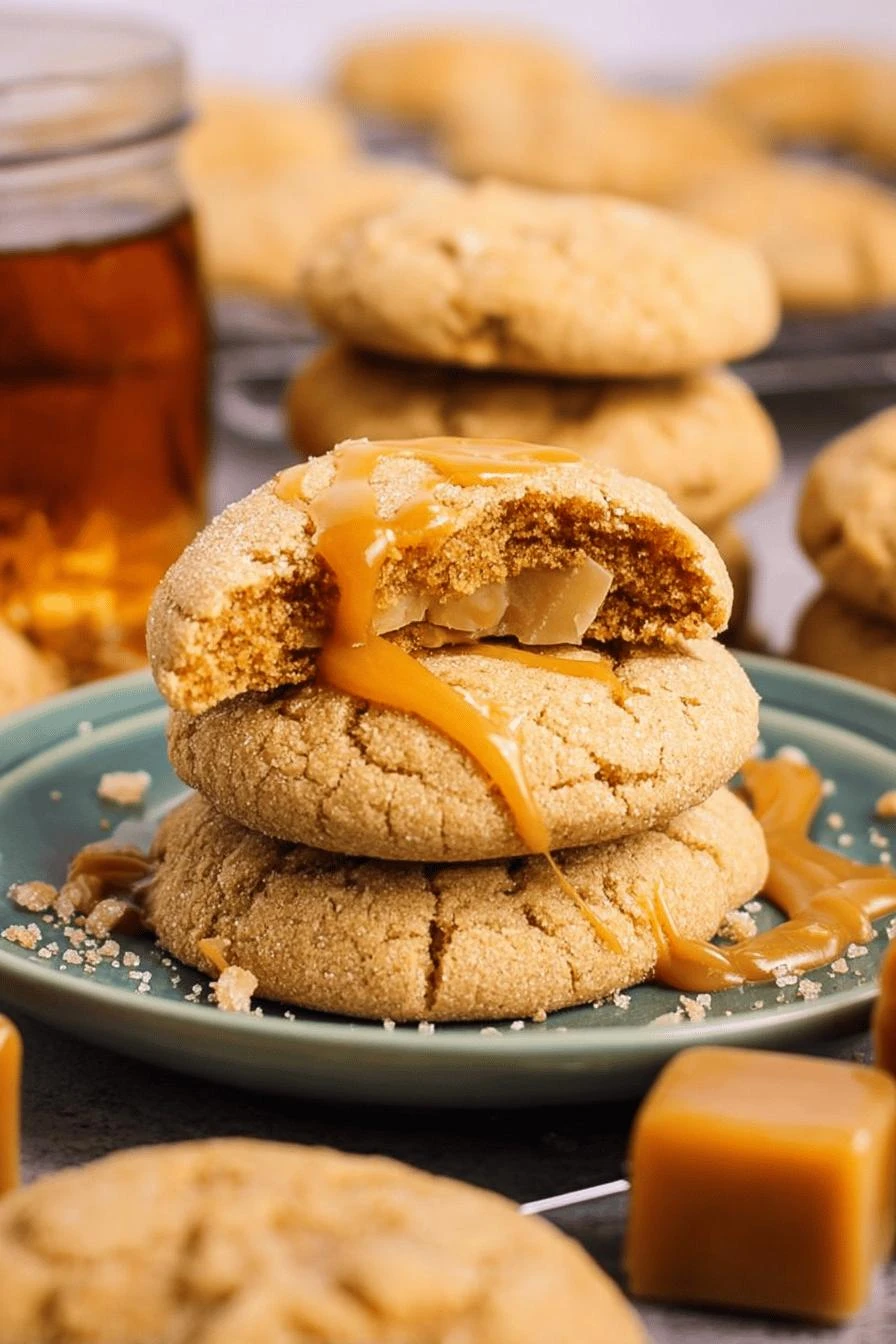 Dough too soft after chilling? Freeze it for 15 minutes instead of waiting another hour. Dough too dry? Add water. Like, a few drops. Cold water. Stir. That’s usually enough. Caramel leaking out the sides? You didn’t pinch it shut tight enough. Fold the dough all the way around. No gaps. Cookies spreading too thin? Next time, chill the dough longer. And the cinnamon sugar coating actually does something — it holds them in place. No caramels? Dulce de leche works. Rehydrate dried apples and chop them. Different thing, but not bad. The apple cider powder sometimes clumps. Sift it if it bothers you. Or just beat it in slowly and it breaks up.
