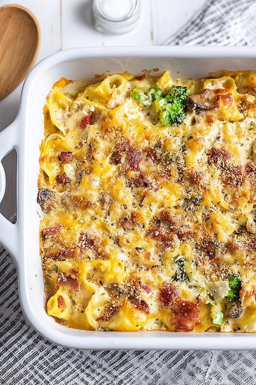 - 💡 Skip mushy broccoli; steam but not too soft. Still want some snap or it turns mush quickly when folded in. Sauté mushrooms if watery raw, cuts moisture, intensifies flavor. Bacon crispness matters; crumble after fully cooked, not soft or greasy. Use bread crumbs dry or toss lightly with melted butter for crunch; panko crunchier but regular still works. Parmesan optional, adds sharp salt hit on top; use sparingly if salty cheese mix already strong.