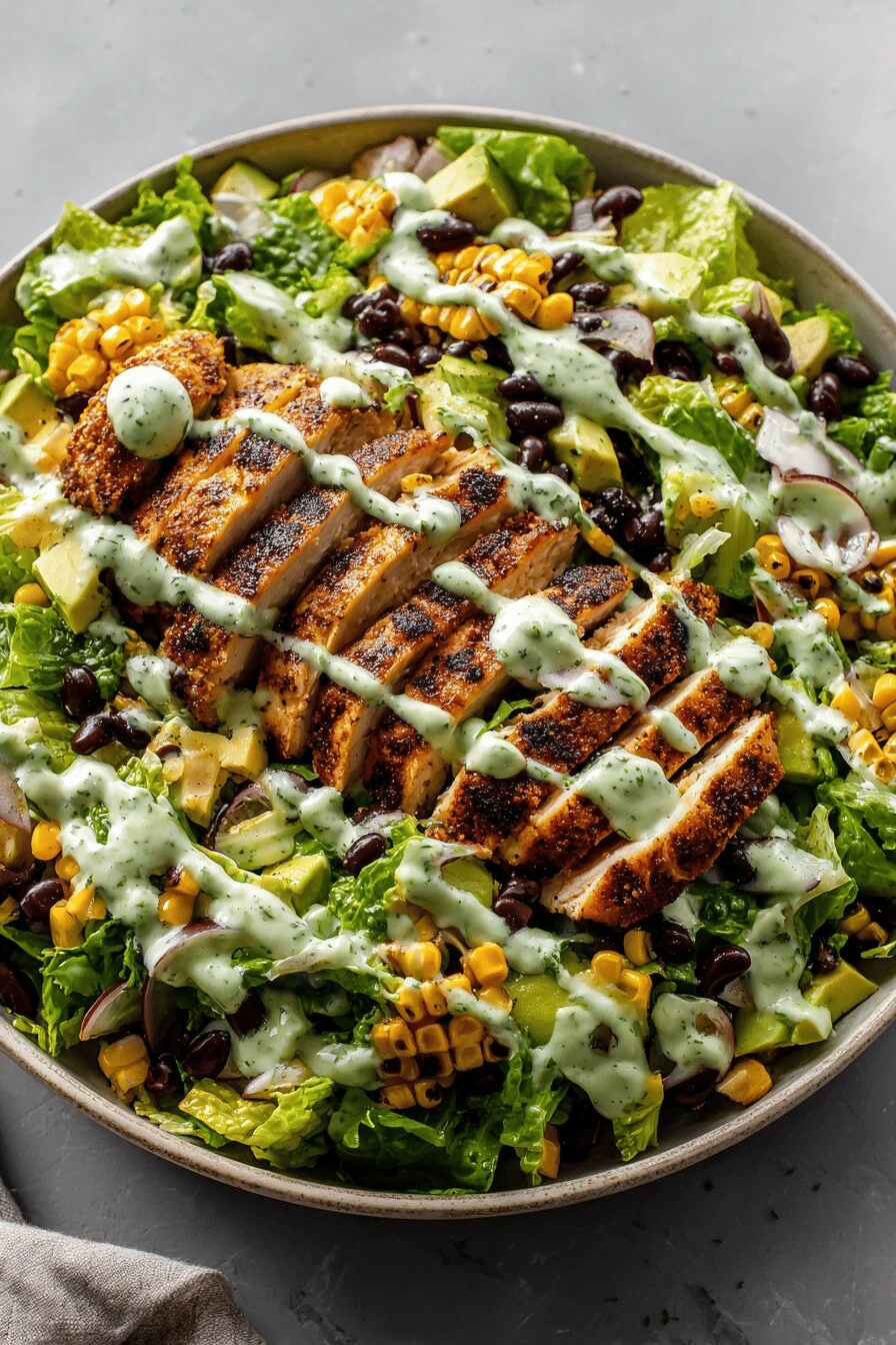 The dressing goes on the side. Sour cream goes on the side. Let people build it. That’s the whole move — everything stays its texture. Corn doesn’t get soggy. Avocado doesn’t get crushed. Romaine doesn’t wilt into nothing. You eat it and it tastes like you actually care.