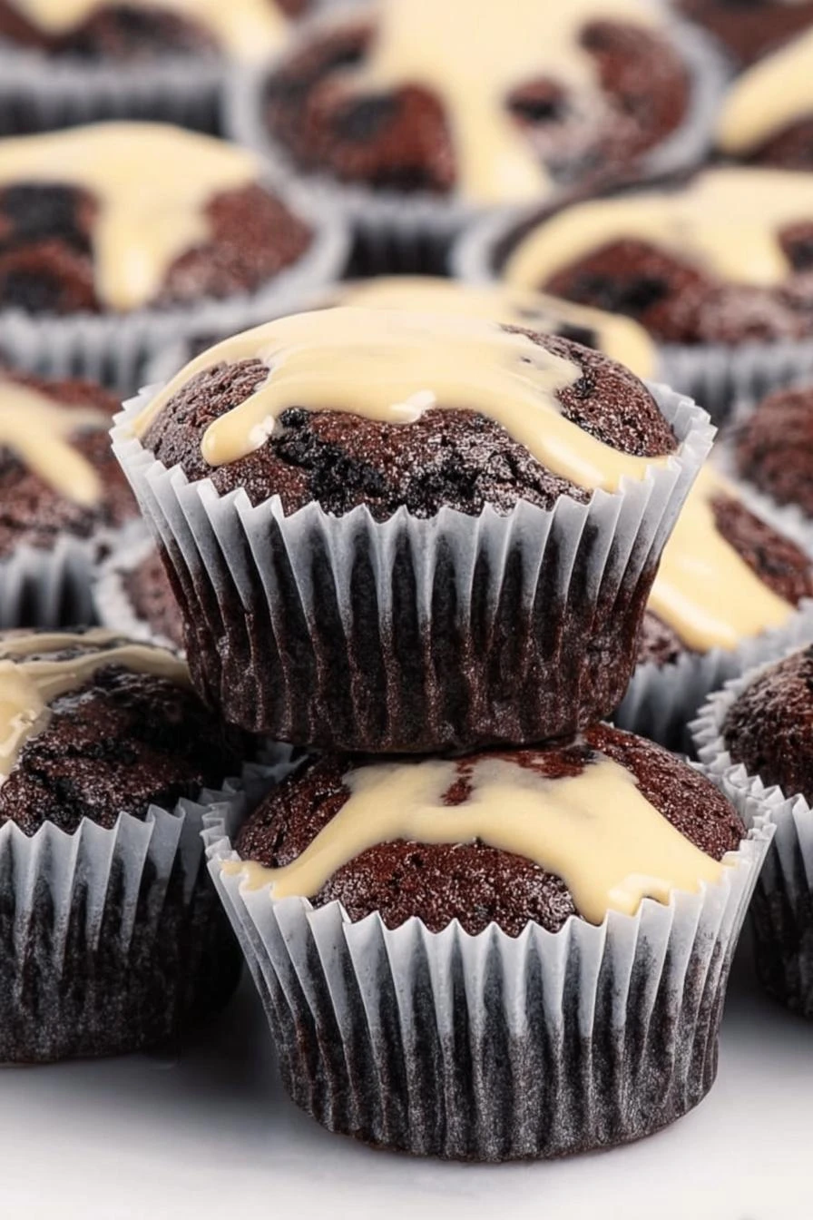 Batter into liners about a third of the way, then a dollop of that cream cheese mixture right in the middle — that’s the whole trick. Looks like two things but it’s one cupcake that comes out chocolatey and rich with this surprise soft center that tastes nothing like regular frosting. Takes 30 minutes total if you move.