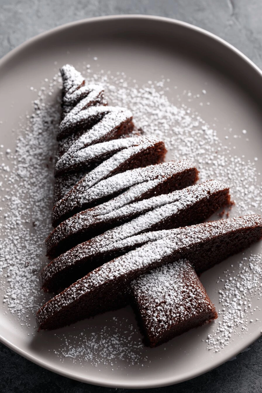 Takes an hour and 15 minutes total, and most of that’s just waiting. Twenty minutes of actual work. Actually homemade chocolate cake without the fuss of tempering or folding anything weird into anything else. The buttermilk and crème fraîche make it stay moist for days—literally tastes better on day two. Chocolate flavor gets deep because Dutch-processed cocoa does that. Not bright, not acidic. Deep. The pine tree shape makes it look like you spent hours. You didn’t. Dusting it with powdered sugar takes three seconds and transforms it into something that looks like a bakery made it. Kids get excited about the shape. Adults eat three pieces.