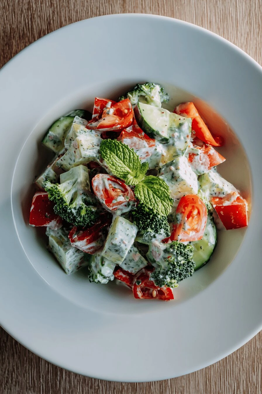 Ready in 12 minutes flat. No cooking. Literally just knives. Raw vegetables stay crisp because you’re not drowning them. The yogurt sauce coats but doesn’t soak everything into mush. Mint. Fresh mint is doing actual work here—not just sitting there. Changes everything. Whole-grain mustard adds this weird grittiness that kind of works. Skip it if you hate texture in dressing. Works as a side for basically anything. Curry, grain bowls, just plain bread. Vegetarian, obviously. Tastes better after it sits. Not immediately. But after it chills, the flavors settle in.