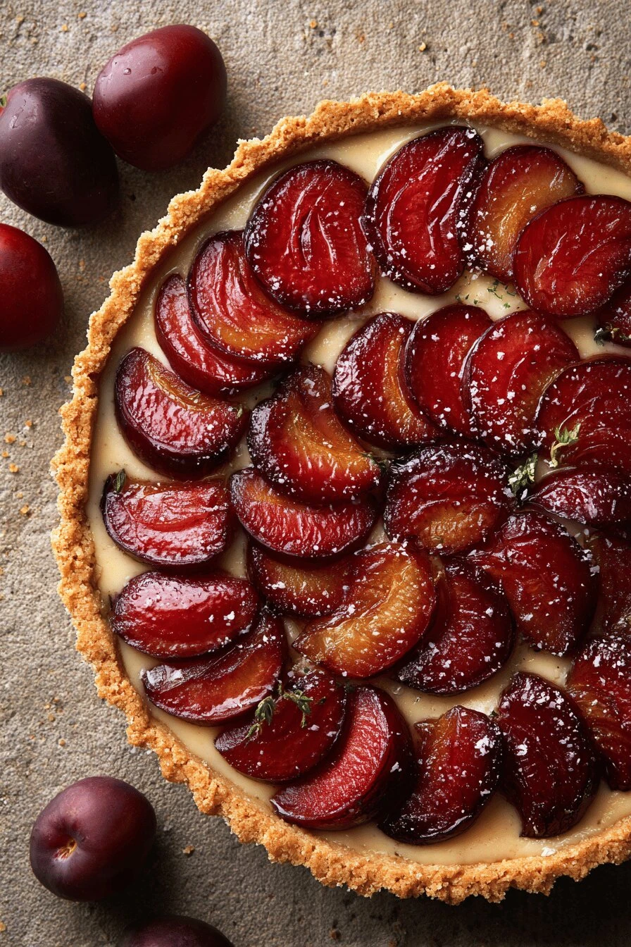 A few things: if the crust browns too fast on the edges, cover them loosely with foil while it bakes. If the custard tastes starchy — chalky kind of — you didn’t stir it enough or the heat was too high. If the plums turned to mush, the syrup was too hot or they sat too long. None of this ruins anything, just different next time.