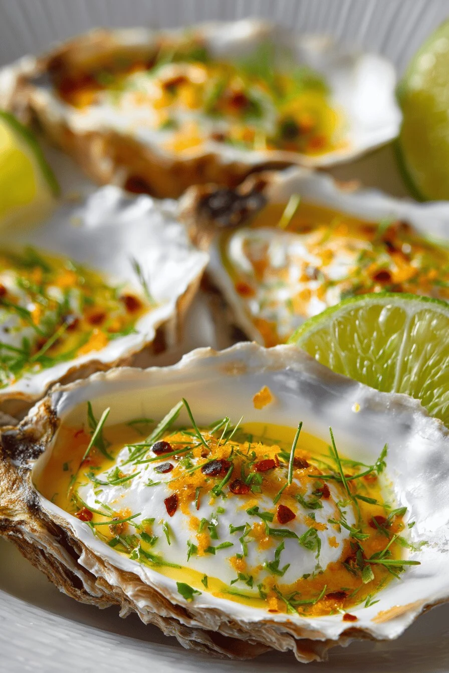 Hot oysters under a blanket of something that tastes like butter got serious about itself. The citrus doesn’t make it taste like juice — it just makes the butter taste sharper, brighter, like the ocean got invited to dinner. Takes 60 minutes total but most of that’s just waiting. Actually good enough to make for someone who matters. Chili flakes are there if you want heat. You don’t have to use them.
