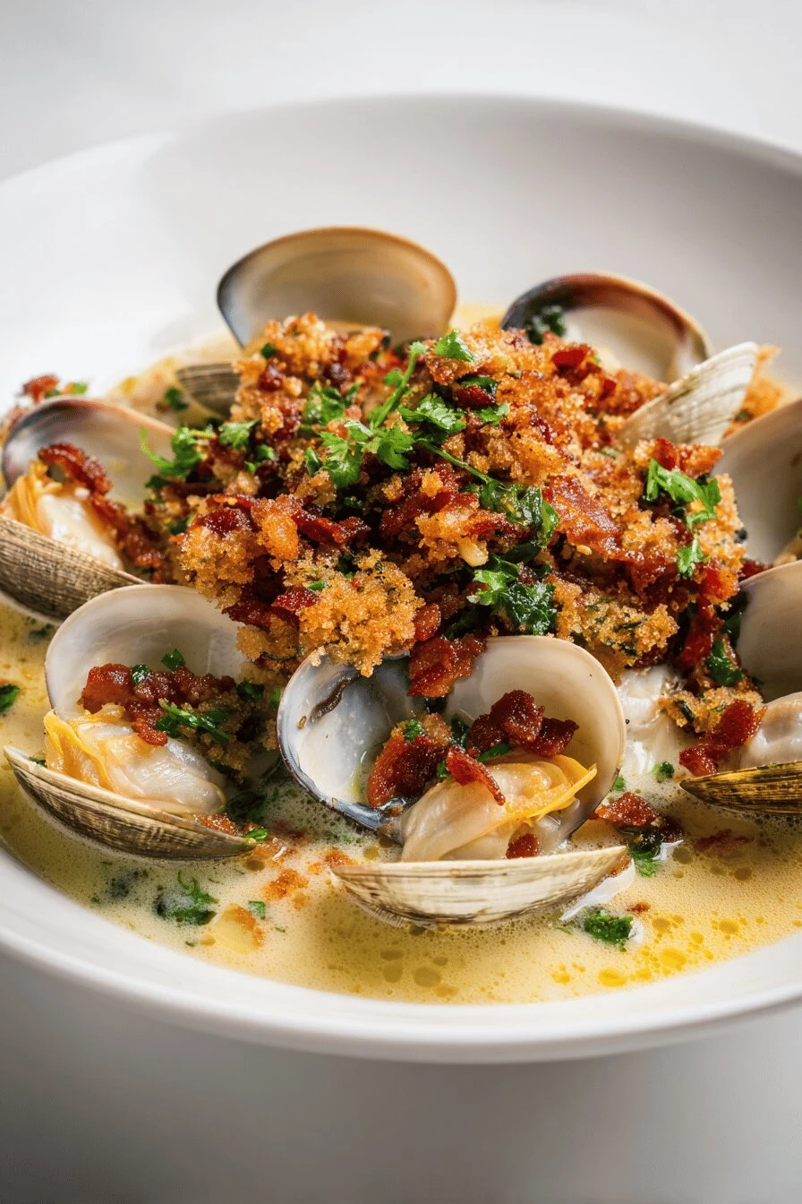 Can I double the recipe? Yeah. Double everything, but don’t double the pot size necessarily. Clams need room to steam evenly. If you double, use two pots or do it in batches. The crumble doubles fine in a larger skillet—just stir it more constantly since there’s more.