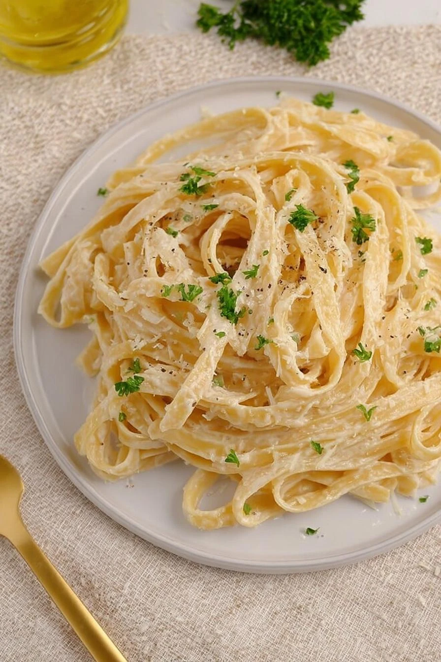 Comfort food without the three-hour guilt trip—just cream, cheese, garlic, pasta. Tastes like someone who knows how to cook made it.
