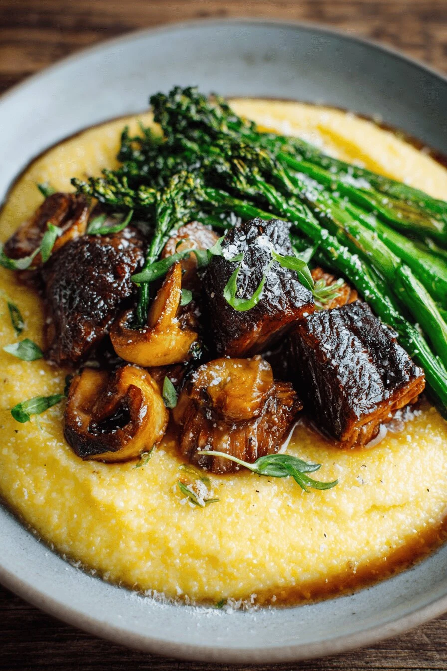 Serve right away. Polenta sets as it cools—gets stiff. If you wait ten minutes it’s different. Eat it hot. Leftovers reheat with a splash of broth or water stirred in over low heat. Gets creamy again. Not quite the same but close.