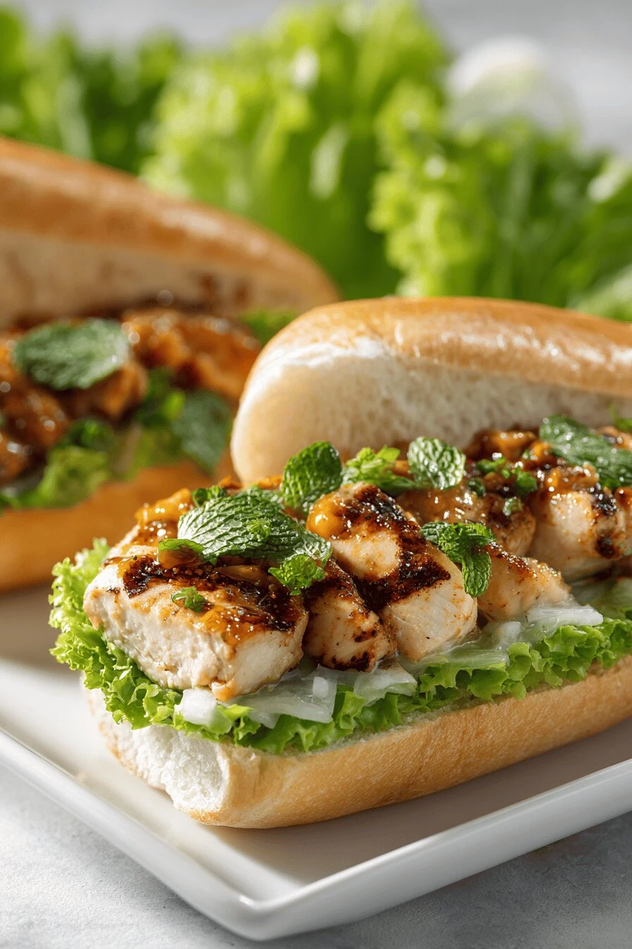 - 6 Slice chicken diagonally against grain, juicy and tender when cut. Spread remaining sauce on baguette interiors, layer lettuce, papaya strips, and chicken slices. Don’t overload or it falls apart.
