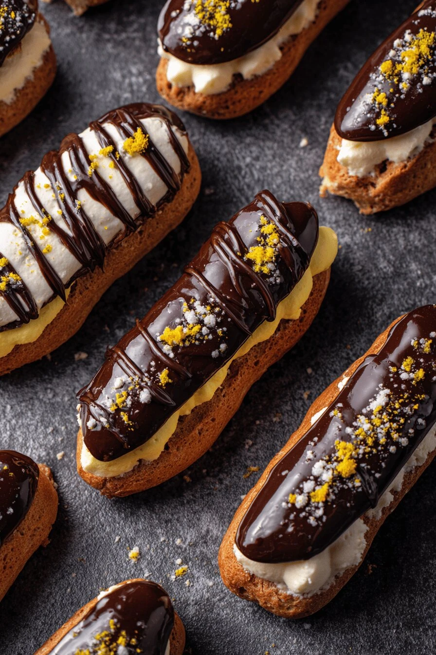 Can I make mini éclairs instead of full-size ones? Yes. Pipe smaller choux pastry lengths — 2 inches instead of 3. Bake 18 to 20 minutes. They puff faster since they’re smaller. Everything else stays the same. You’ll get more éclairs but filling takes longer.