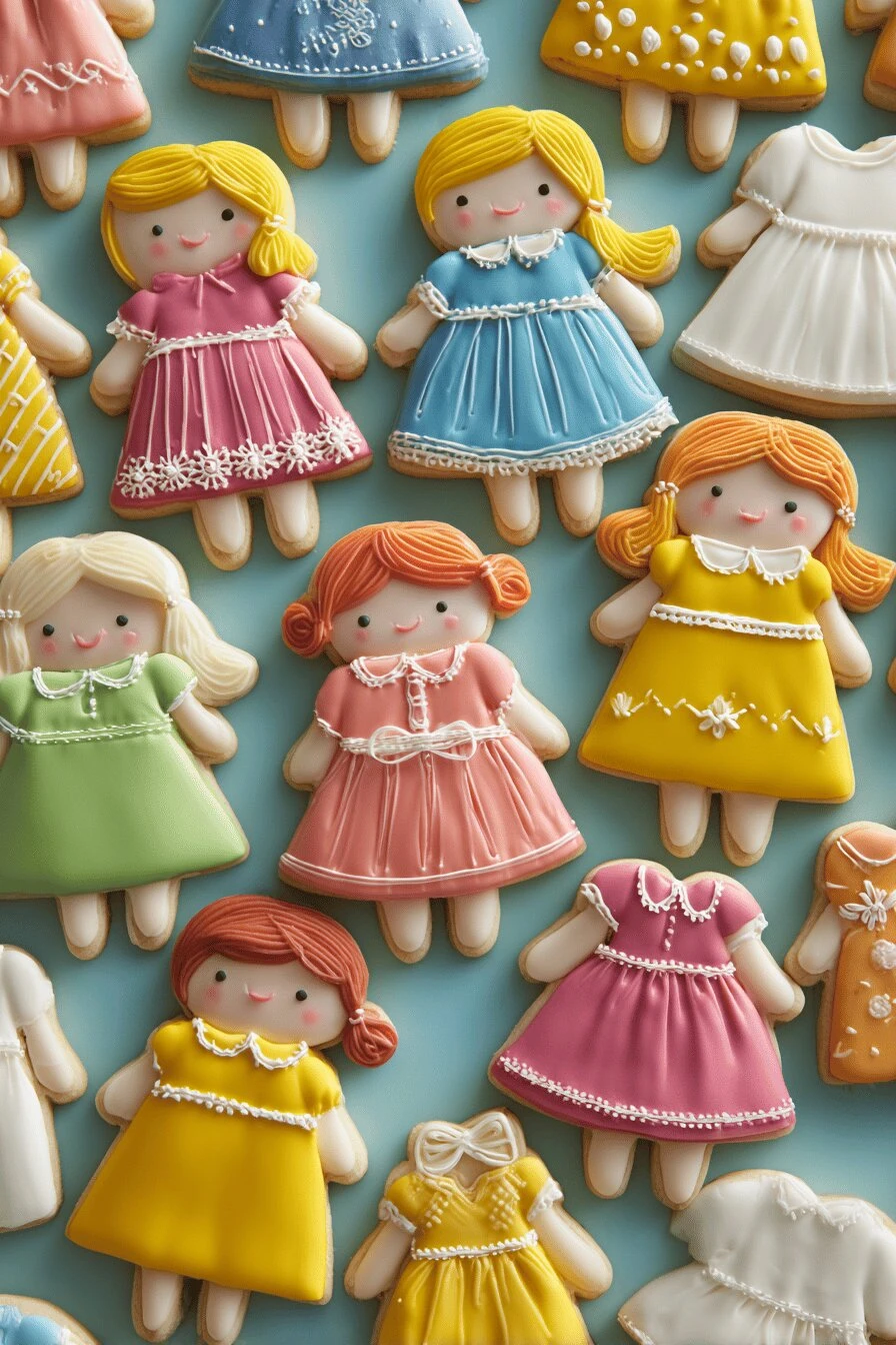 Three layers of dough. One becomes the doll. Three become the clothes. Bake them separate, assemble with royal icing. This is the kind of cookie that looks complicated—the kind you see at a party and think “okay, someone spent actual time here”—but it’s just smart construction. Had a batch that fell apart the first time I tried assembling them. The icing wasn’t thick enough. Fixed that, and now they hold together fine.