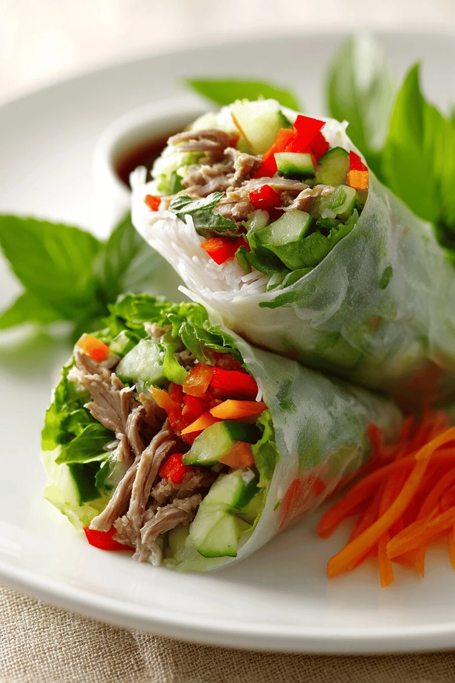 Can you make the duck confit filling ahead? Absolutely. Shred the duck, keep it in a container, make the rolls when you’re ready. Filling lasts three days in the fridge. Just bring it to room temperature before rolling or it’ll tear the paper.