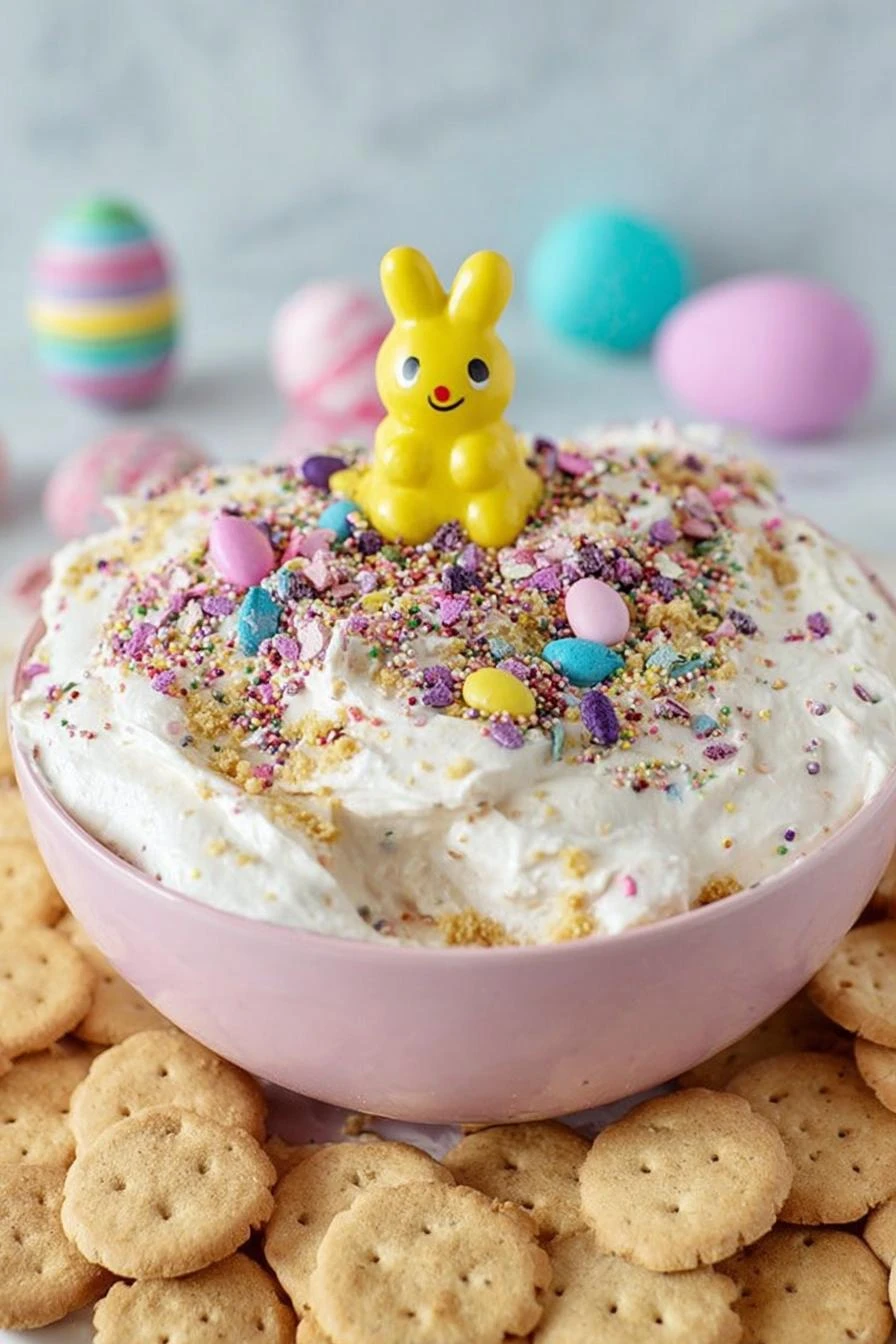 Can I use a tzatziki recipe base instead of cake mix for a savory dip? No. This is a dessert. A sweet dip. If you want savory Greek yogurt sauce like tzatziki, that’s a completely different recipe with cucumber and dill. This one’s pure Easter party dessert. Stay in your lane.