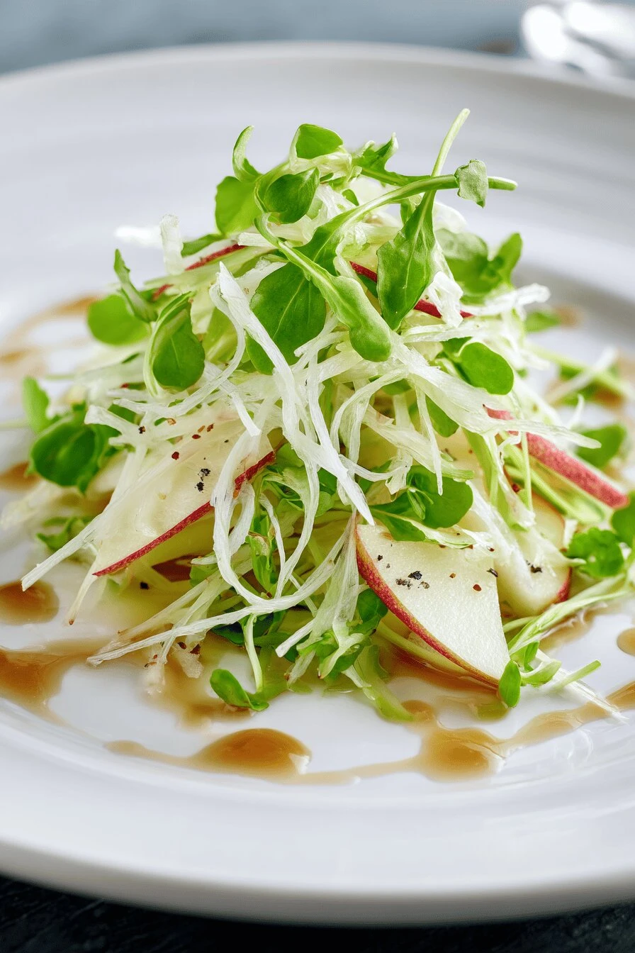 Don’t skip the mandoline. Regular apple slices are too thick. They’re boring. Thin changes everything. Don’t use regular arugula if you can help it. Micro arugula stays delicate. Regular stuff gets limp and tastes peppery in a way that takes over.