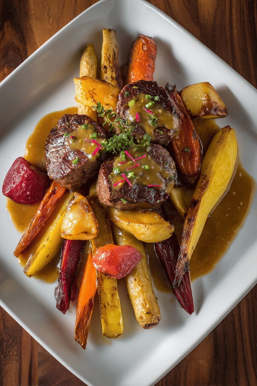 Steaks Filet Mignon with Roasted Root Vegetables