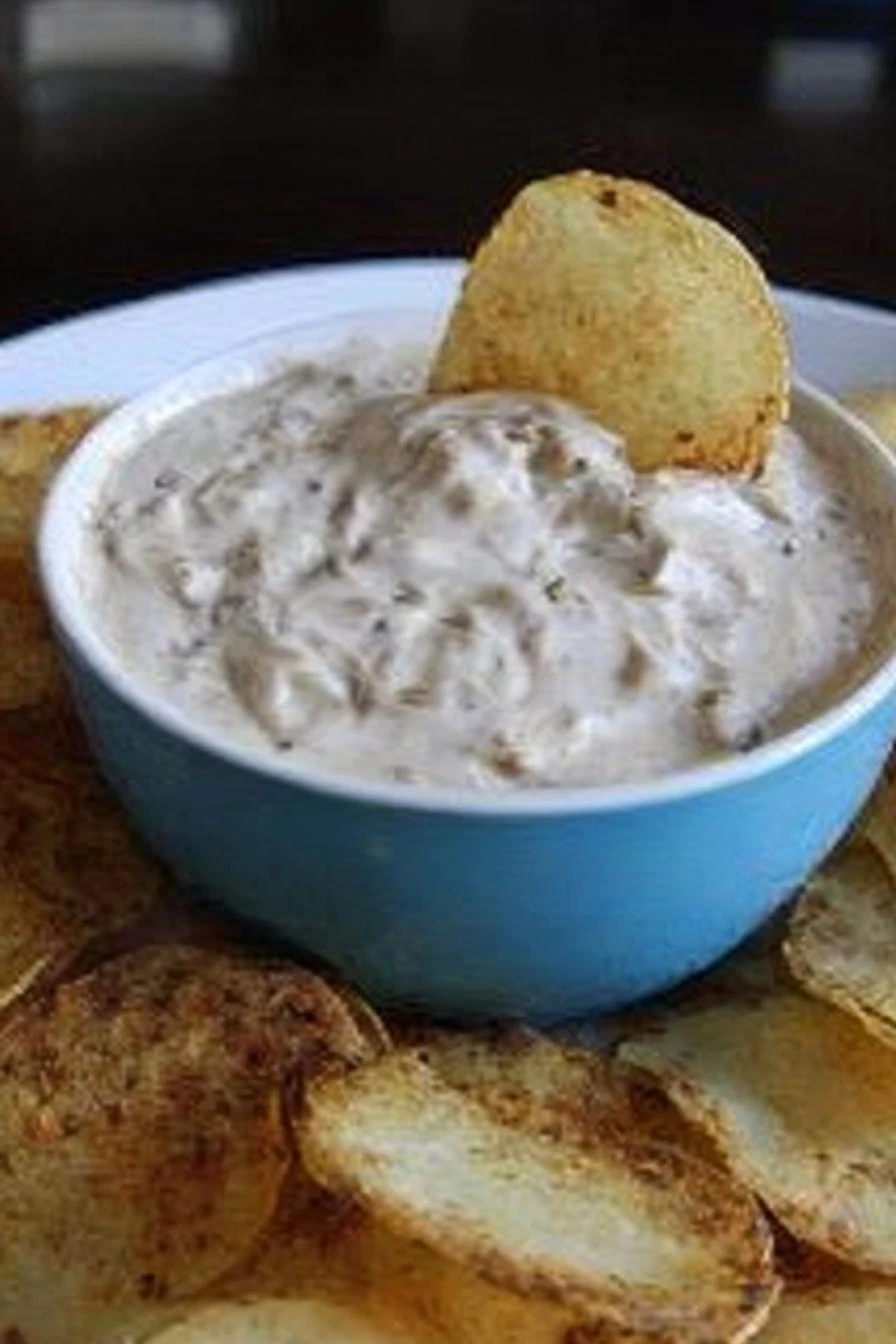 - 6 Serve chilled with sturdy chips or crisp veggie sticks to handle dense creaminess. Avoid overly salty chips; too much salt kills subtlety the dip builds.