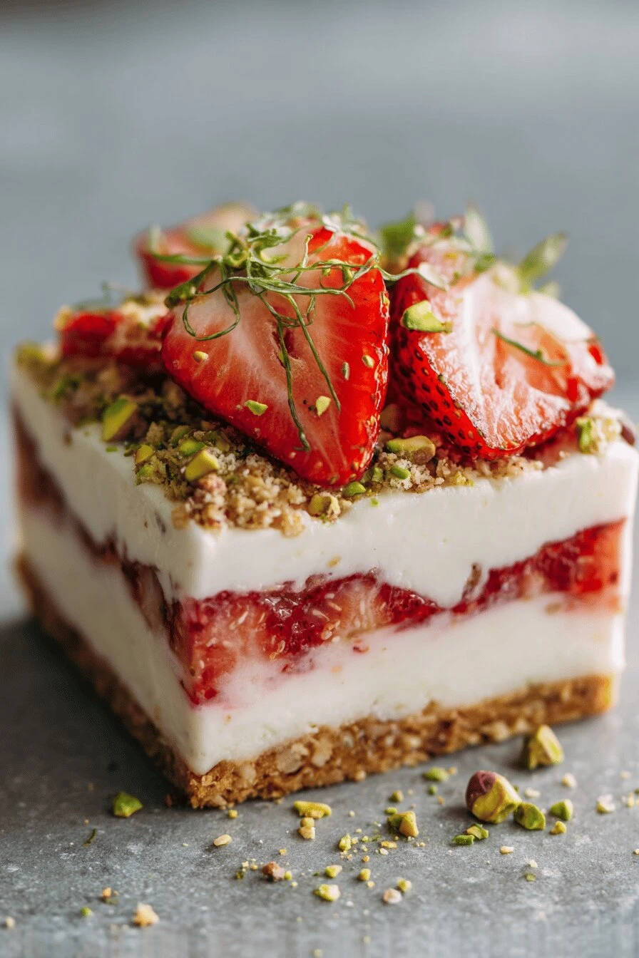 Can I swap the strawberries for something else? Pistachio crumble. Chocolate. Fresh berries. Lime curd. Base doesn’t care. Macerate whatever you pick with sugar so it releases juice.
