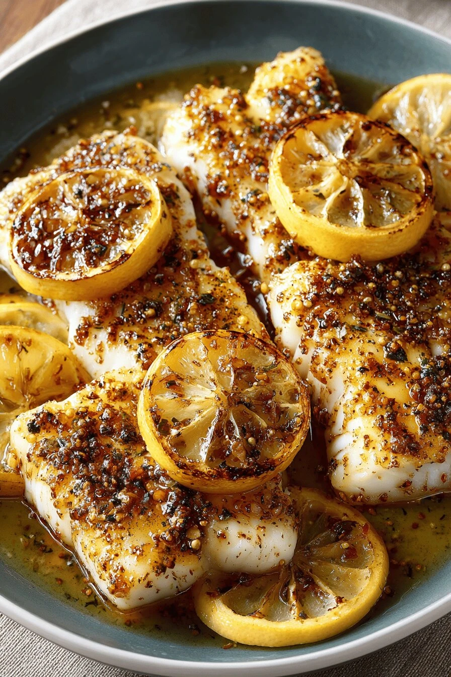 Cut the fish thin or thick—doesn’t matter much, just watch it like a hawk. Three lemons, a skillet that’s already hot, and 34 minutes total. That’s it. The glaze is mustard and maple stirred together—nothing fancy. You sear it, char the lemon, brush the glaze on, then slide the whole pan under the broiler until it’s bubbling and golden and maybe slightly blackened at the edges. Which is exactly when you pull it out.