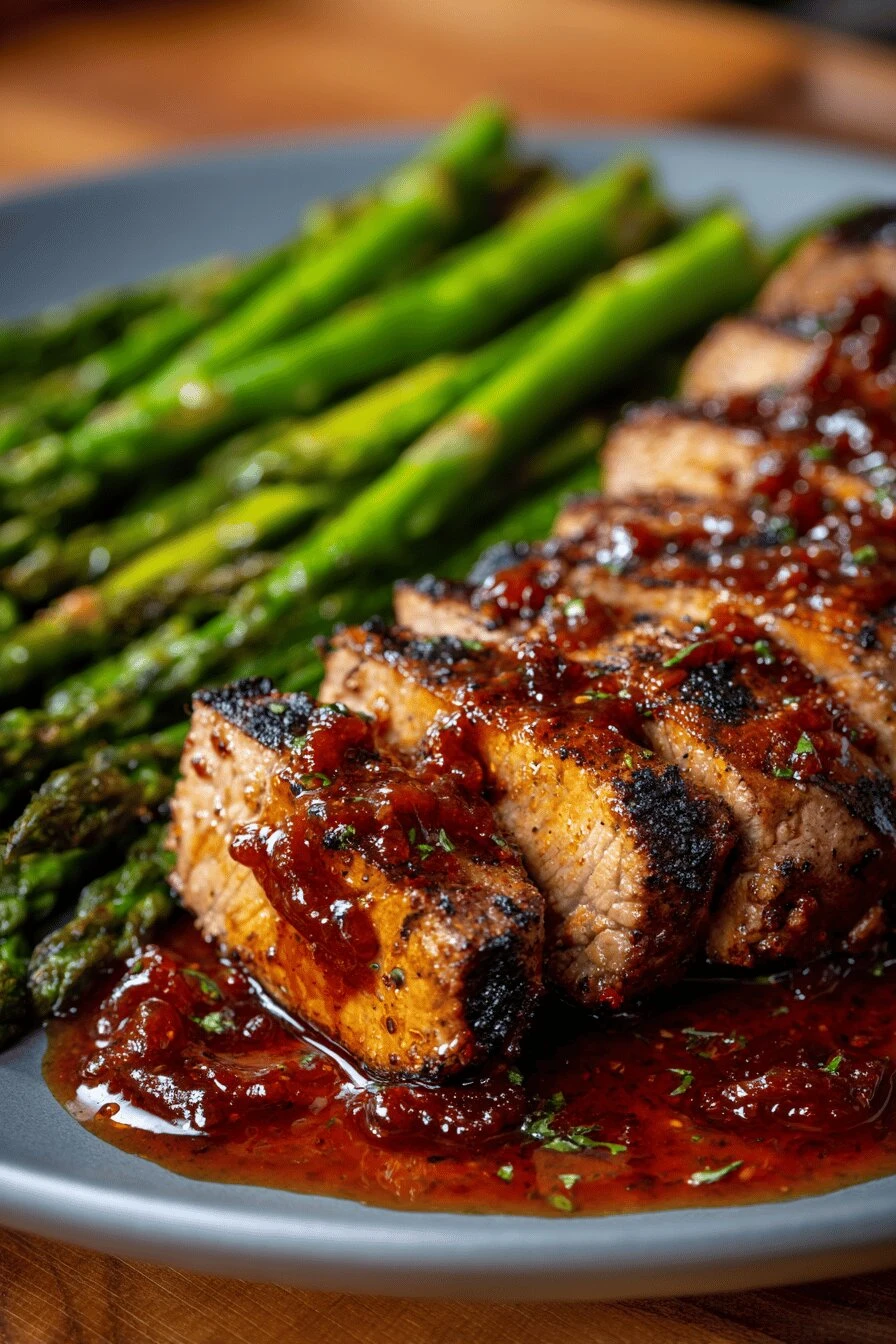 Serve it with asparagus or whatever vegetable. The glaze is already doing the sauce job, so don’t overthink sides.