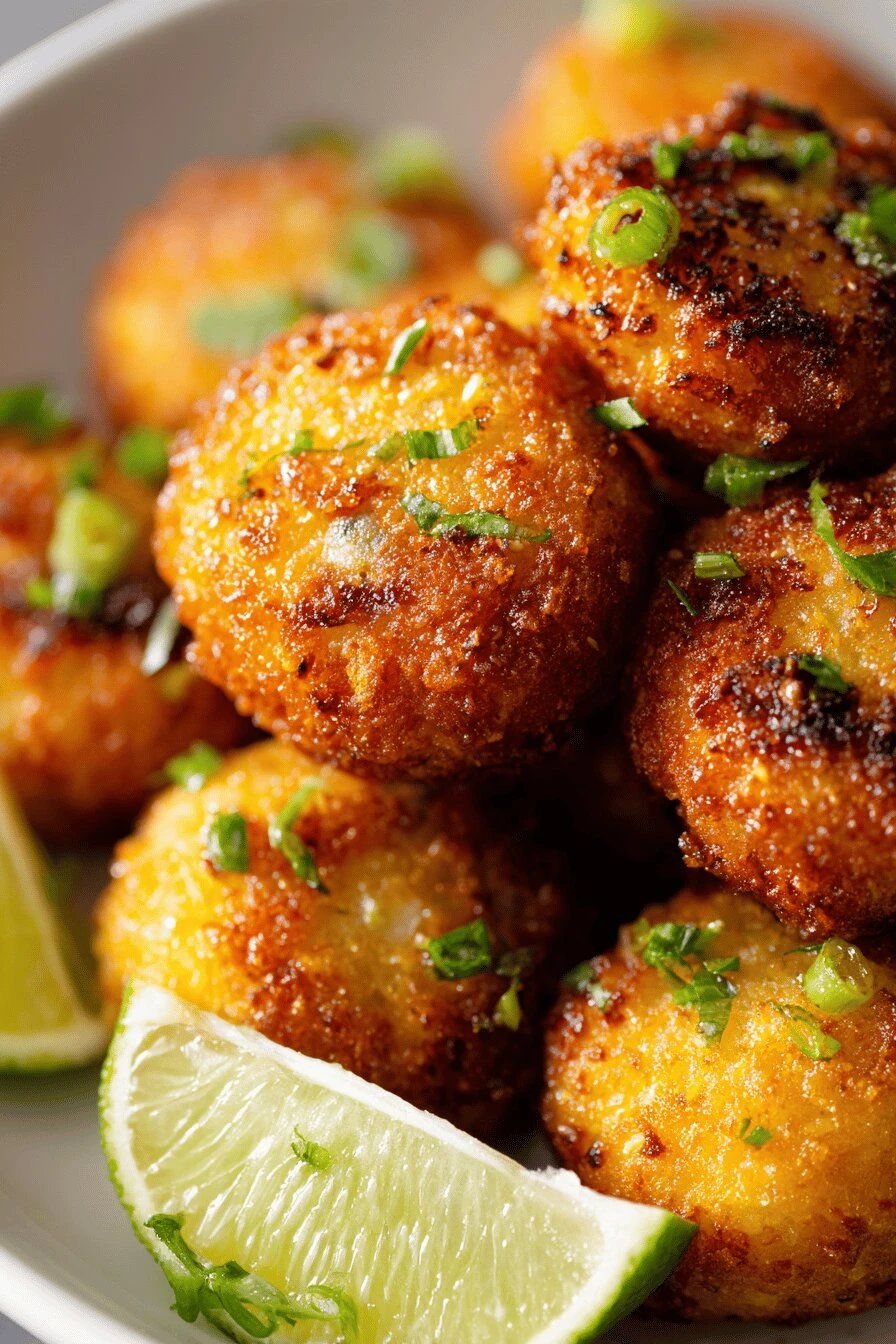 Takes 55 minutes total. Thirty-five of that is prep. Frying’s the fast part. Spicy but not aggressive. Cayenne and cumin do the work. Green onions keep it fresh. Gluten free without tasting like cardboard. Corn masa and tapioca starch stay crispy. Cold the next day, still snaps. Seafood appetizer that works at a table or standing up. Lime wedges make people squeeze them without asking. Pumpkin’s in there — nobody notices it, texture just gets better.