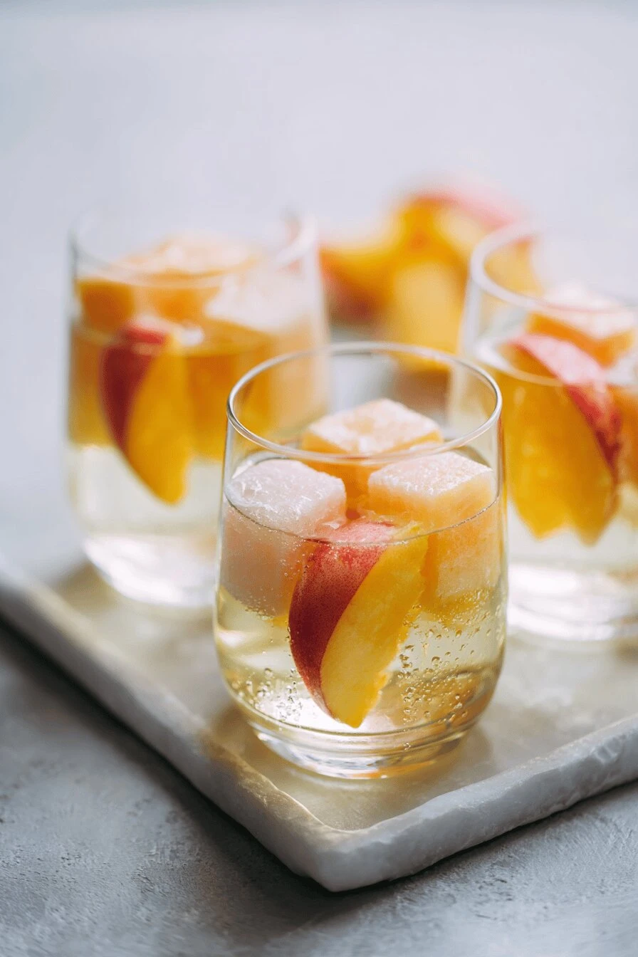 Takes 20 minutes to prep, then the freezer does the work. Summer drink that feels fancy but it’s just fruit and wine sitting in a pitcher. The peach ice cubes melt slow—they don’t dilute it to nothing like regular ice does. Grapefruit and white wine together, cold enough to actually taste good on a hot day. Works as a cocktail or just a drink on its own.