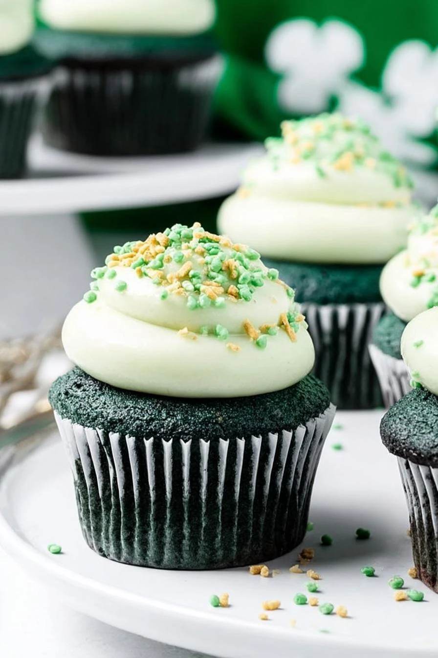 Takes 38 minutes start to finish if you’re moving. Party ready. They look insane and people always ask what’s in them. The cocoa and green food coloring make something that tastes like chocolate but looks like it came from somewhere else entirely. Cream cheese frosting that actually holds. Not runny. Not grainy. Kids destroy these. Adults do too. Works for literally anything — birthday, potluck, Tuesday afternoon when you need cupcakes and didn’t plan ahead.