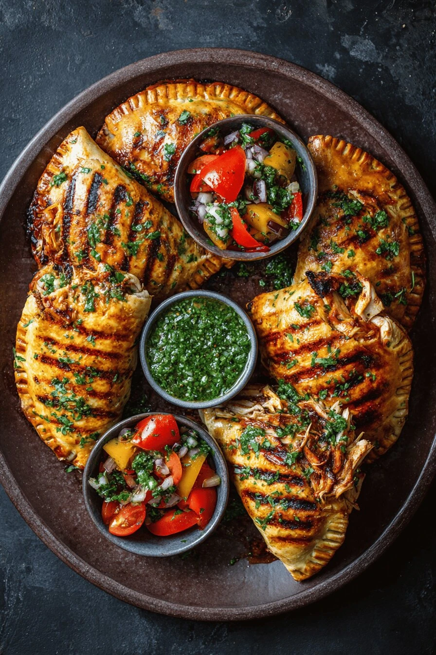 Thread the onion and bell pepper on soaked skewers. Grill them until the edges go dark. Mix that charred stuff with chicken, chipotle BBQ sauce, salsa verde. Stuff it all into pizza dough. Fold. Seal. Grill it until the crust goes crispy and hollow. Done in 45 minutes.