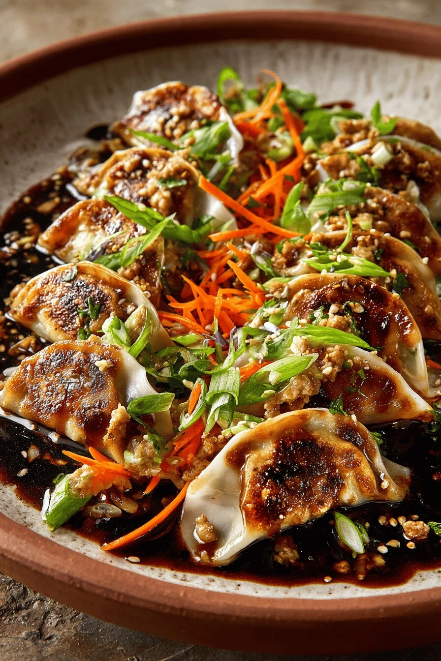 Makes six at a time, fits in a regular skillet. Spicy peanut satay sauce comes together while the dumplings cook. Not complicated. Just hot broth, almond butter, sesame oil, chili. Works. Asian appetizer that actually impresses. Tastes like you spent three hours. Didn’t. Pan-grilled until the outside snaps. Inside stays tender. That texture thing works because of the poaching step—most people skip it. Cold the next day, maybe better. Satay sauce gets thicker, richer. The dumplings reheat fine in a dry pan.