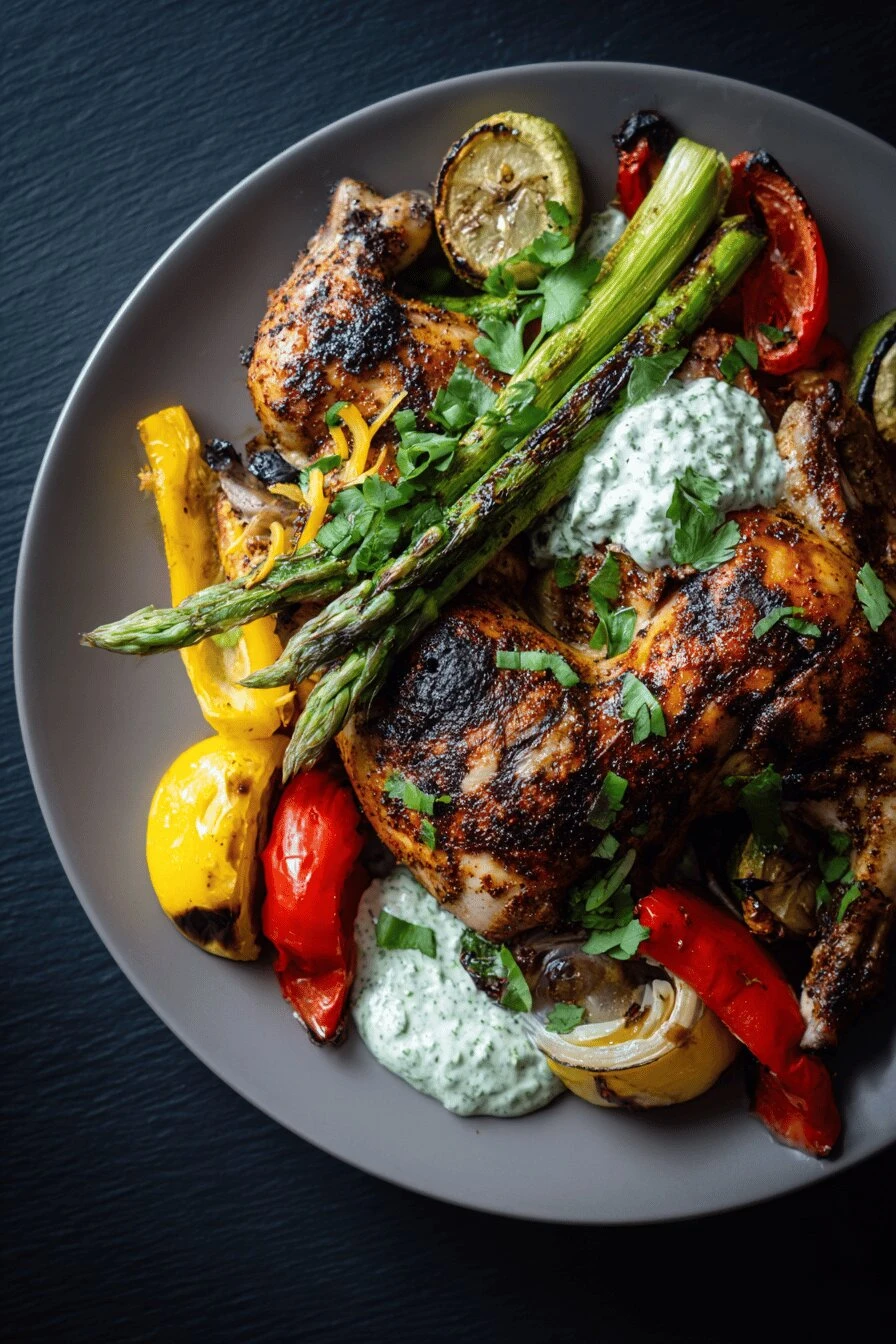 Crispy skin that actually stays crispy. The indirect heat setup keeps it from charring while the meat underneath finishes cooking through. Takes an hour and a half total but you’re mostly just letting the grill do the work—maybe thirty-five minutes of actual hands-on time prepping and seasoning. Works perfectly for summer entertaining. Cook one bird, feed six people, no stress about timing individual pieces. The pesto mayo cuts through the spice and smoke in a way that makes you want more every single time. Leftovers shred into salads or sandwiches the next day. Cold chicken with this sauce tastes almost better than hot.