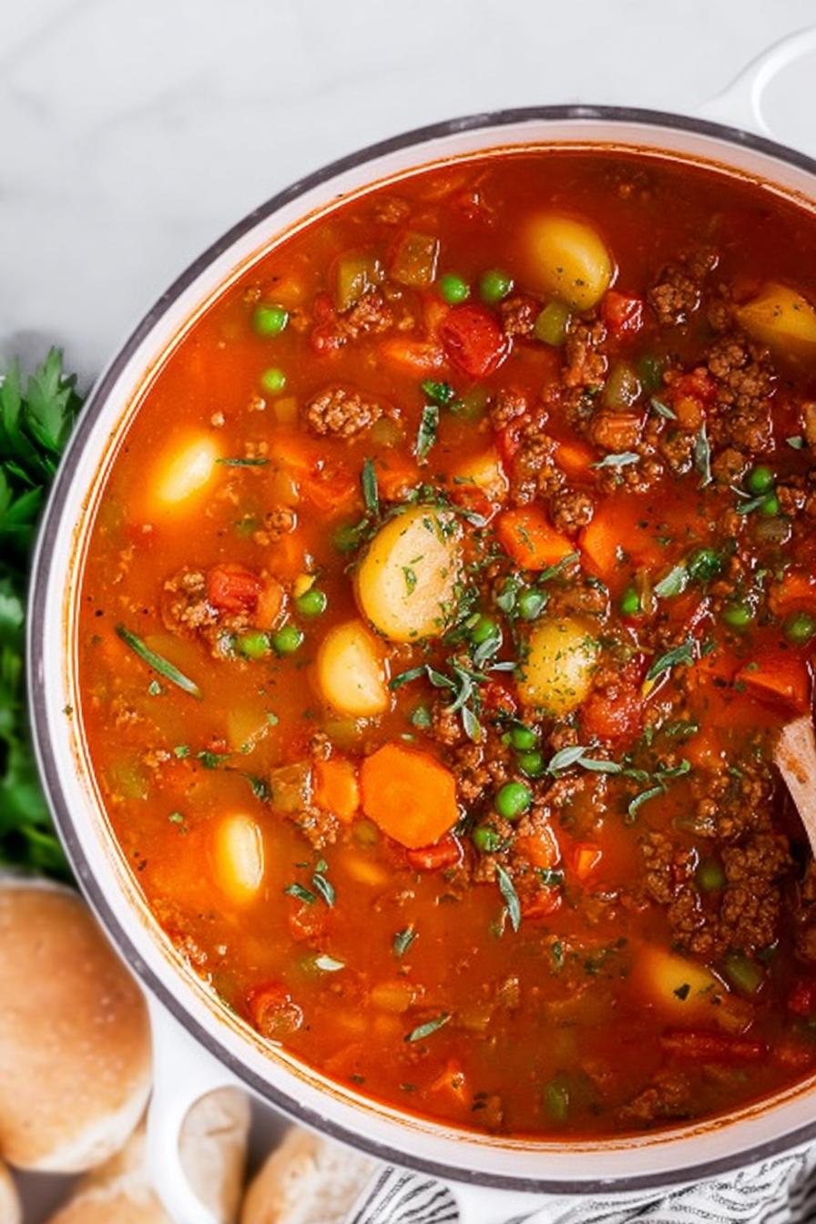 - Heat large stockpot over medium until hot. Toss in ground beef and diced onion, celery (or bell pepper), carrot. Break beef apart, stir frequently. Listen—the sizzle means proper heat, no crowding the pan to avoid steaming. Beef should brown deep mahogany, vegetables soft, about 8-10 min.