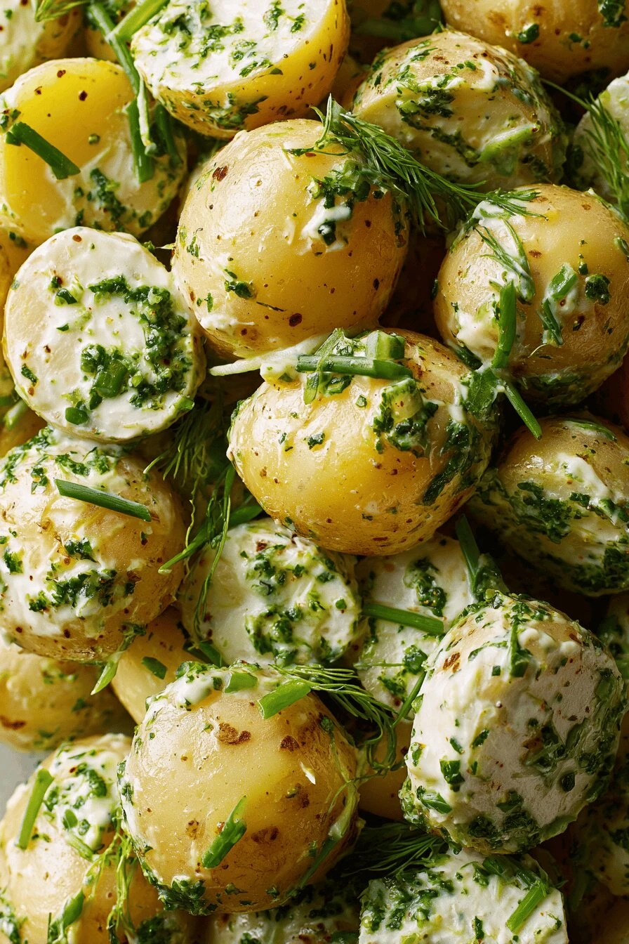 What’s the difference between this and regular mayo potato salad? Crème fraîche is lighter. Pesto adds actual flavor instead of just richness. Mustard keeps it from being bland. Mayo potato salad is heavier. This one you can eat more of without feeling it.