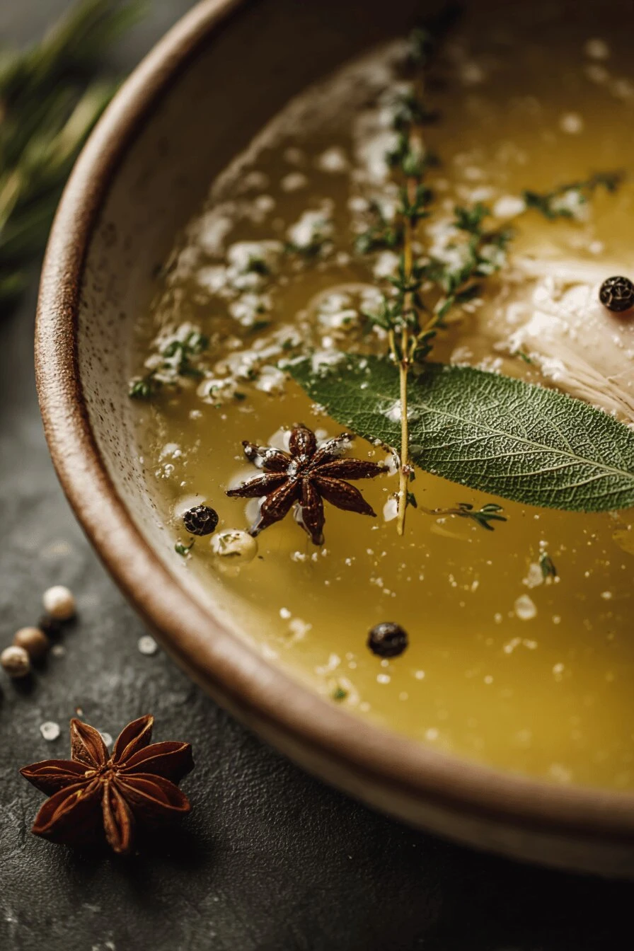 Homemade Chicken Broth with Garlic & Herbs