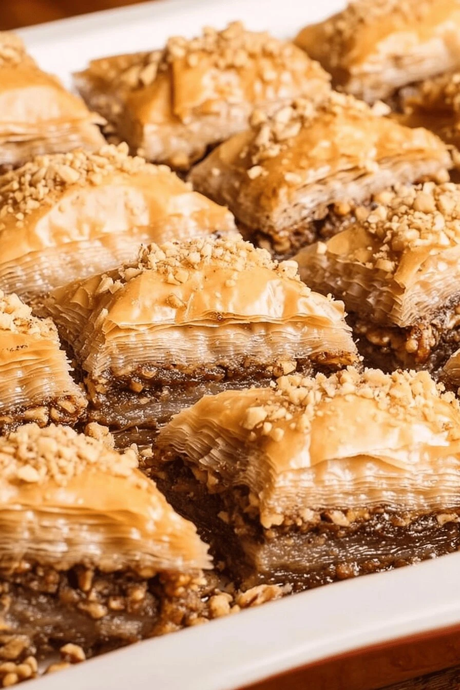 Can I make this ahead? Make it the day before. Pour the syrup the night before or the morning of baking. Let it sit. Everything melds together and tastes better. The phyllo stays crisp. Actually improves after 24 hours.
