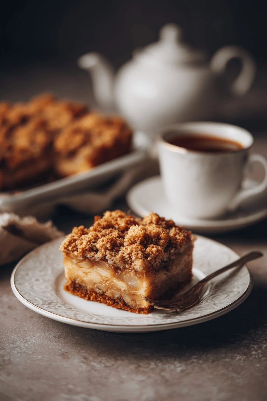 Can I make this crumble cake ahead of time? Bakes fully. Cooling takes about an hour before it’s stable. Keeps fine at room temperature covered loosely. Better chilled overnight. The tart rhubarb dessert actually tastes better the next day — flavors settle.