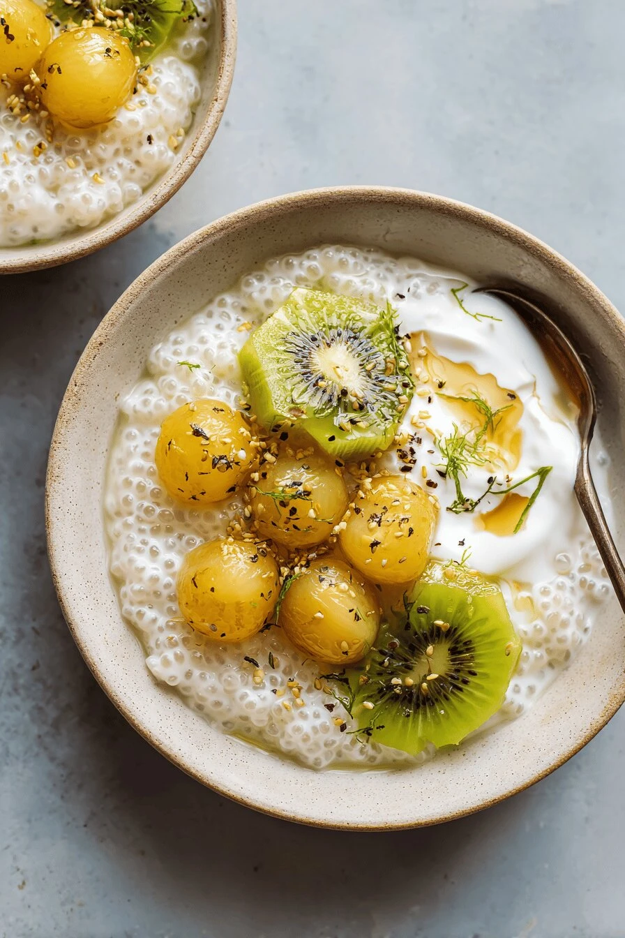 - 6 Before serving, stir tapioca to loosen. Spoon into bowls, dollop yogurt atop, scatter kiwi pieces. Drizzle honey or agave to taste, adds bright sweetness against creamy base.