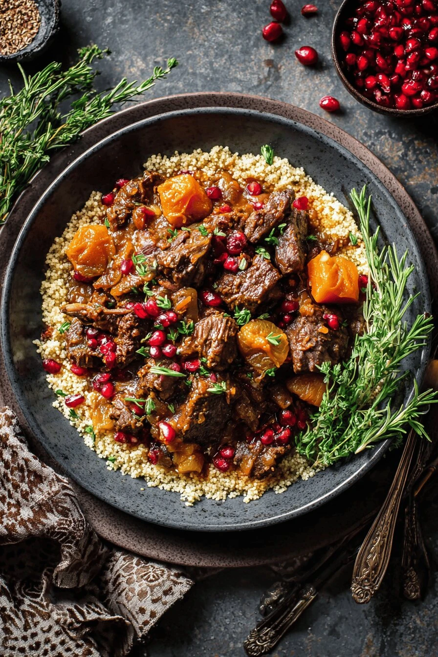 Takes four and a half hours total but maybe twenty minutes of actual work. Set it and forget it. The spices — ras-el-hanout, turmeric, fennel — they bloom in the pan first so they’re not just sitting there flat. They taste like they know what they’re doing. Cold couscous, hot tagine, fresh cilantro. Works as a weeknight thing or a dinner where people think you spent all day in the kitchen. Almond butter thickens it without cream. Dried apricots and figs get soft and almost jammy. Not complicated, just layered. Leftovers taste better the next day. The spices keep settling deeper into everything.
