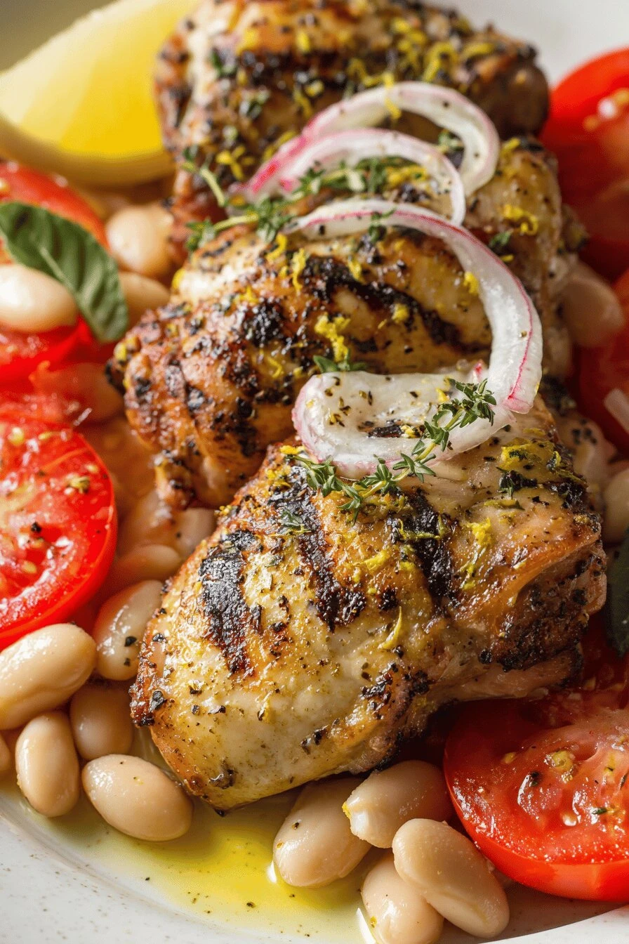 - 8 Serve thighs with white bean salad and slices of colorful tomatoes drizzled with avocado oil, salt, and pepper.